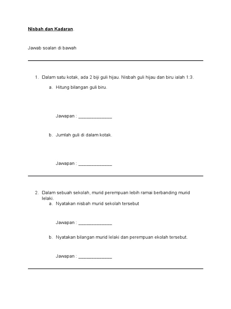 Contoh Soalan Nisbah Dan Jawapan